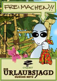 Hallo, Ich sitze hier auf der Dateninsel mit Ned fest und lasse es mir gut gehen. Freibad, der die Insel bevölkert, kann ganz schön gerissen sein, ist aber ein feiner Kerl. Komm auch mal hier her und gewinn als Hauptpreis eine Traumreise für 2 Personen. Check ein unter www.cyquest.de! Zwölf magische Zeichen, so heißt es, bergen ein Geheimnis: Wer sie findet, dem verleihen sie unbeschränkte Macht. Wer alle zwölf Zeichen versammelt, der kann das Schicksal der Welt neu gestalten. Alles Wissen vergessener Zeitalter ist darin gespeichert. Sie liegen verstreut in den Untiefen der Zeit. Einer Zeit, in der die Zukunft für die Menschheit noch nicht verloren war. Finde die zwölf Zeichen. Und die Geschichte beginnt von Neuem ... ein geheimnissvolles Amulett weist den Weg...